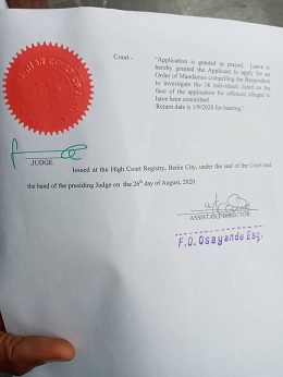 Read MoreThe Oasis Reporters August 26, 2020 The Edo State High Court sitting in Benin has granted an order for the