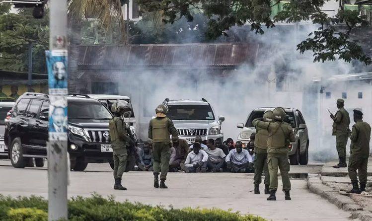 Read MoreThe Oasis Reporters December 9, 2021 Zanzibar’s anti-riot police officers stand guard over protesters cornered during opposition protests in Stone