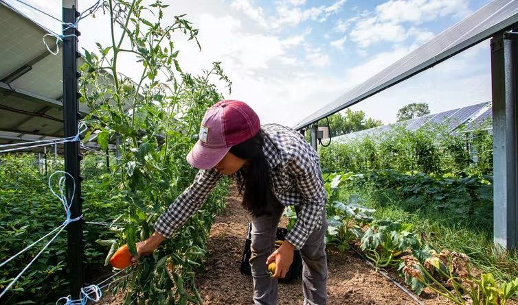 Integrating solar panels with farming can provide partial shade for plants.
