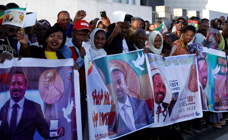 Ethiopians celebrate Prime Minister Abiy Ahmed’s Nobel Peace Prize win in 2019.