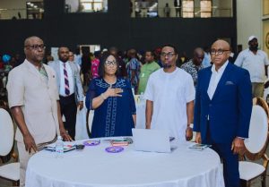 L-R: Special Adviser to the Governor on Strategy, Policy, Projects and Performance Management, Mrs. Sarah Esangbedo Ajose-Adeogun; representative of Edo State Commissioner for Agriculture and Food Security and Permanent Secretary in the Ministry, Peter Aikhuomobhogbe; representative of Edo State Governor and Permanent Secretary, Office of the Secretary to the State Government, Barr. Deborah Enakhimior; Managing Director, Edo State Investment Promotion Office and Chairman of the Edo State Arable Land Committee, Kelvin Uwaibi, Mr. Kelvin Uwaibi, and representative of the Foundation for Partnership Initiatives in the Niger Delta (PIND), Chuks Ofulue, during the workshop on Edo State Access to Arable Land, at the Government House, in Benin City.