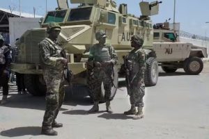 Africa Union soldiers at a security cordon in Mogadishu, Somalia. AFP via Getty Images