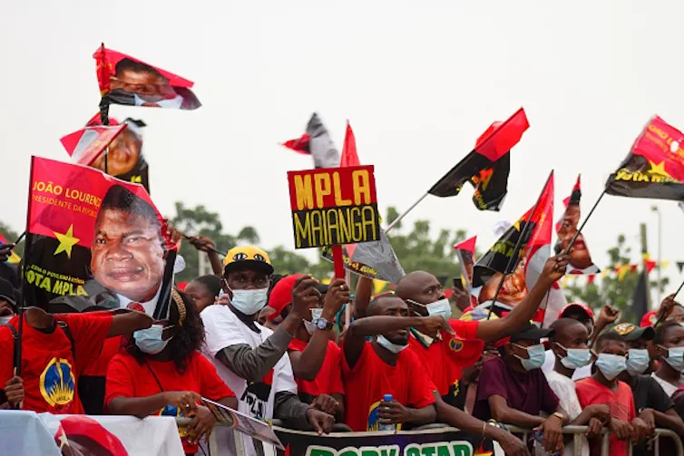 People’s Movement for the Liberation of Angola (MPLA) supporters at a campaign rally. The party has run the country since independence in 1975.