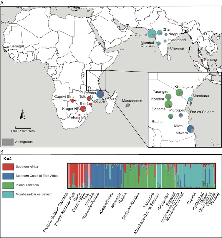 But there is a mystery to baobabs, as they are also found in India. How did they get there? Our new research is starting to shed light on the answer.
