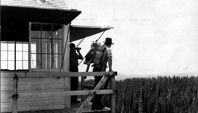 Before satellites, fire crews watched for smoke from fire towers across the national forests.