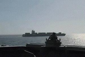 When a ship approaches the blockade line en route to or from an Iranian port, the US Navy will radio the vessel and say it is not free to go through. Most ships will then turn around.