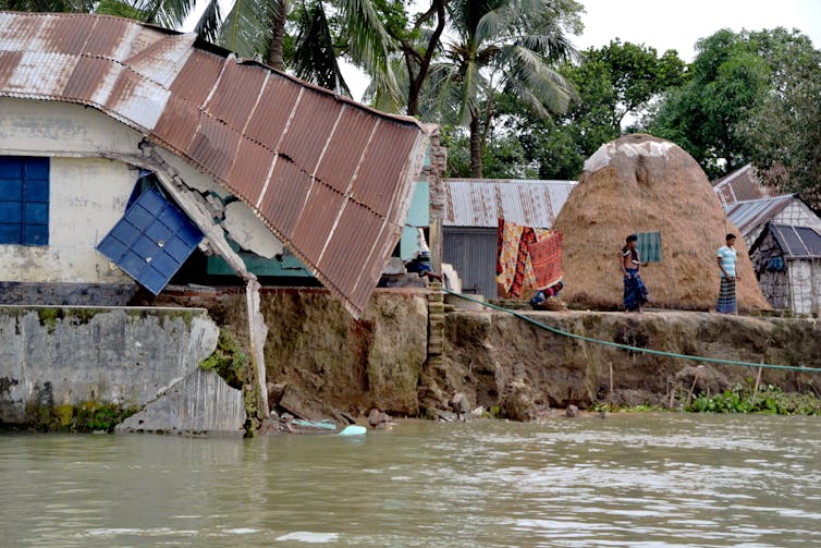 Riverbank erosion usually happens slowly, but occasionally a larger chunk of land suddenly falls into the water. This is what happened the day Sahia lost her first house. As soon as she noticed how deep the cracks were in the ground, she started carrying out their belongings to safety. A few hours later, the house was gone.
