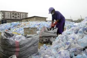 A worker sorting plastic bottles at a recycling plant in Lagos. Pius Utomi Ekpei/AFP / Getty Images