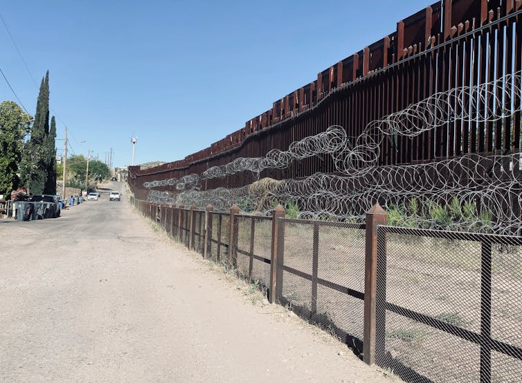 Border wall separating the town of Nogales, Ariz. at the U.S.-Mexico Border.