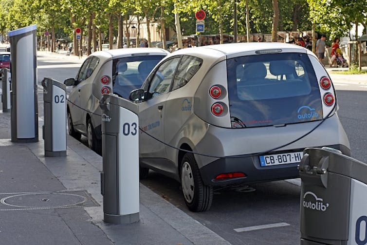 Electric Cars being recharged in Paris. South Africa needs to subsidise entry level vehicles to boost sales.