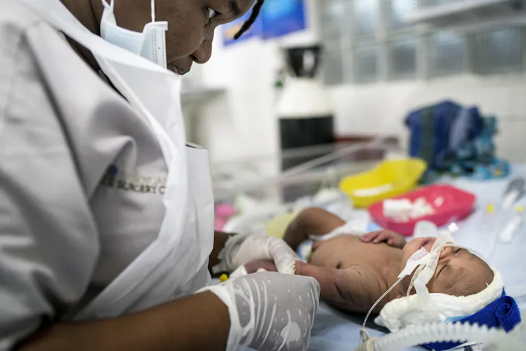 A premature infant receives care at Koidu Government Hospital in Kono, Sierra Leone.