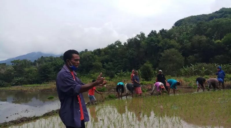 Technical guidance on rice planting in the Sinar Tani farmers group.