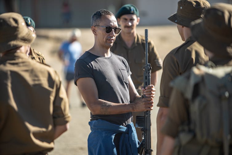 Nicholas is gay. To the Christian nationalist rulers, he is just as much of a threat as the black resistance fighters who are nameless, faceless enemies to be exterminated in the film. Everything that is not in service of the apartheid state must be extinguished or repressed.