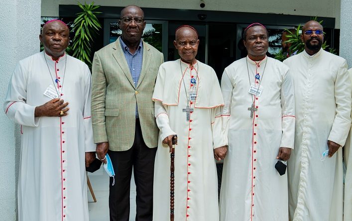 The Edo State Governor, Mr. Godwin Obaseki, on Tuesday, received in audience, the Emeritus Archbishop of the Catholic Archdiocese of Lagos, Cardinal Olubunmi Okogie, who is in Benin for the 90th birthday celebration of Archbishop Patrick Ekpu, the Emeritus Archbishop of Benin.