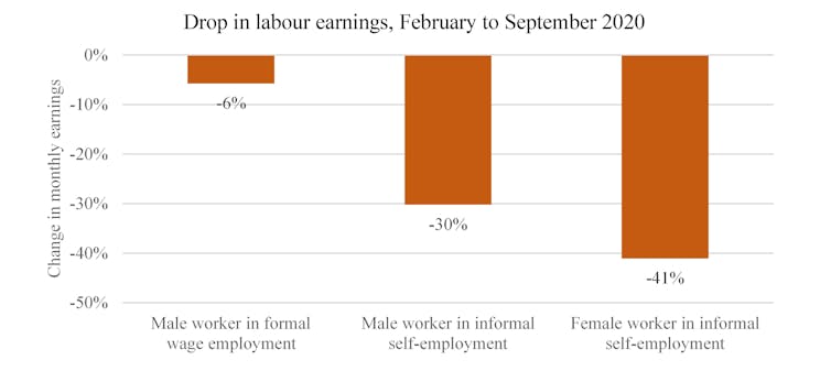 Business owners in the informal economy most often had to stop their activities in the early phases of the pandemic and saw a slower near-term recovery in terms of both employment and earnings. This means that people in contact intensive environments such as restaurants, tourism businesses, small retail shops, and street vending were the most affected.