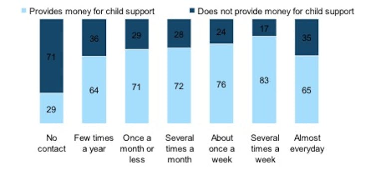 Amount of contact non-resident fathers have with their children, by whether they provide money for child support.