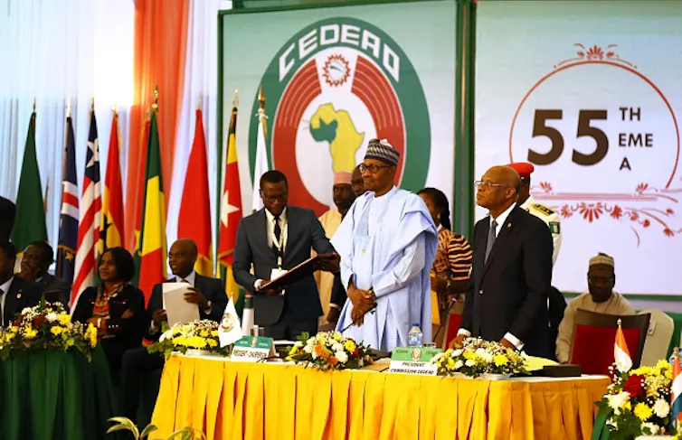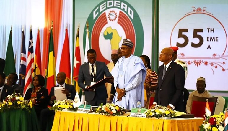 Nigeria’s president Buhari chairing the 55th ordinary session of the ECOWAS.