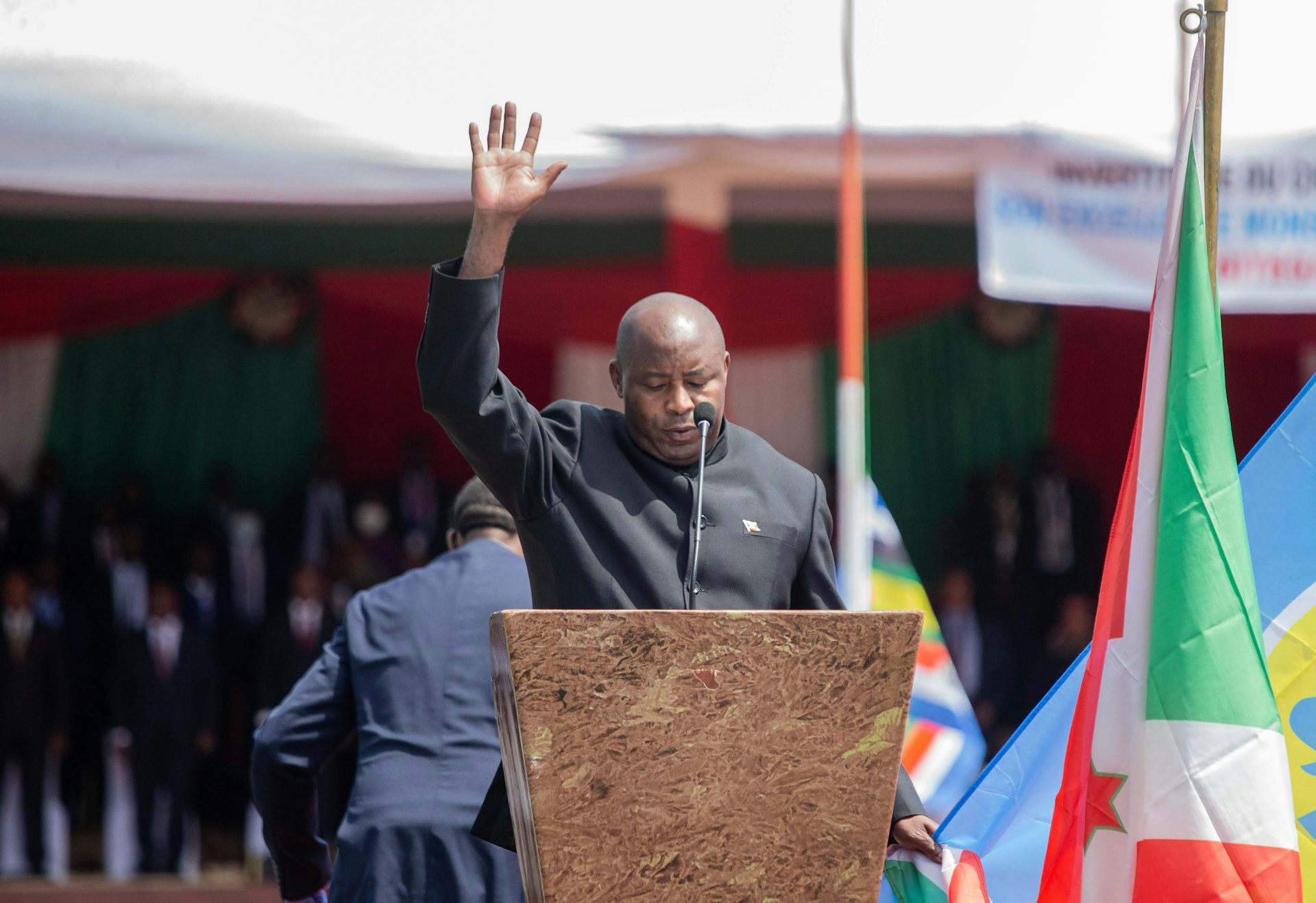 President Evariste Ndayishimiye takes the oath of office on June 18, 2020. He took over from the late Pierre Nkurunziza.