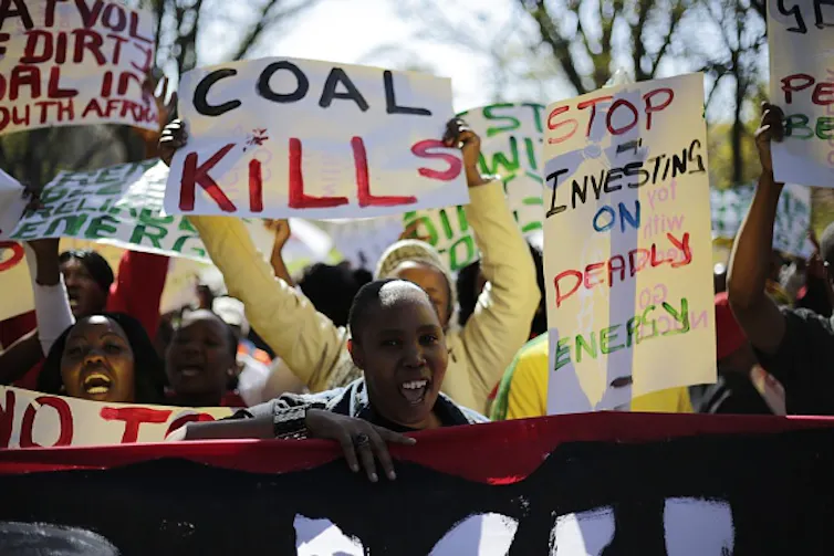Demonstrators in Johannesburg march against environmental damage done by coal.