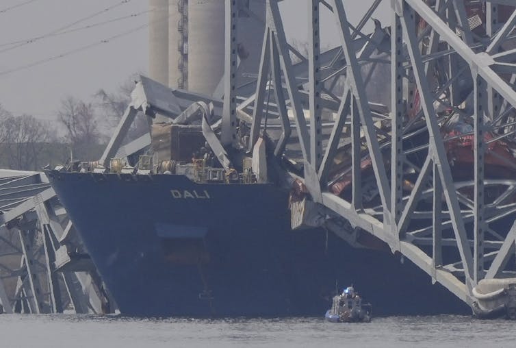 The ship Dali amid the wreckage of the Francis Scott Key Bridge on March 26, 2024.
