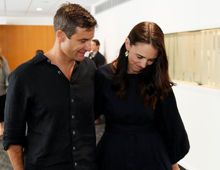 Jacinda Ardern and partner, Clarke Gayford, leave after she announced her resignation in New Zealand.