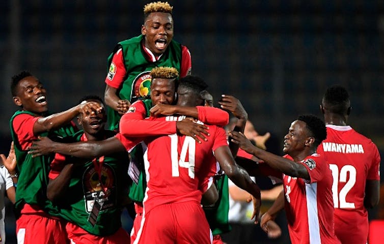 Kenyan players celebrate a win against Tanzania in a match played in Cairo. Sporting bodies say Copyright Amendment Bill threatens sports development. KHALED DESOUKI/AFP via