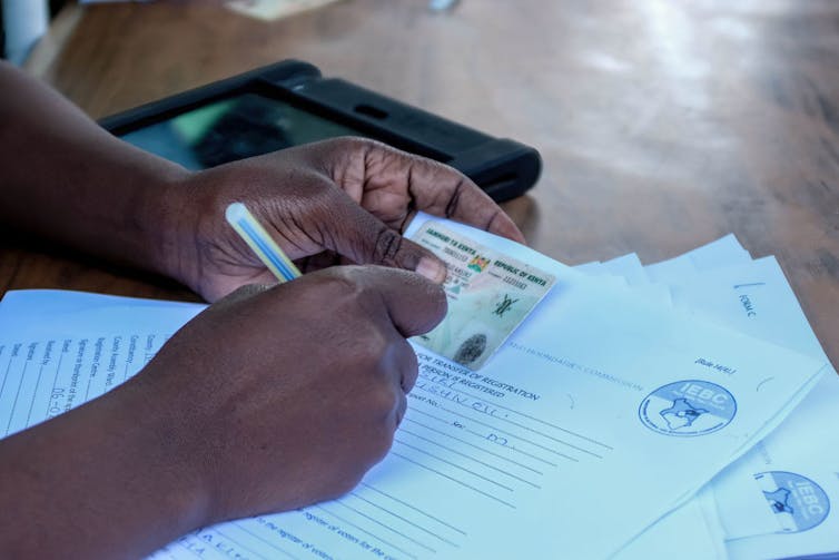 A Kenyan elections official registers a voter’s details.