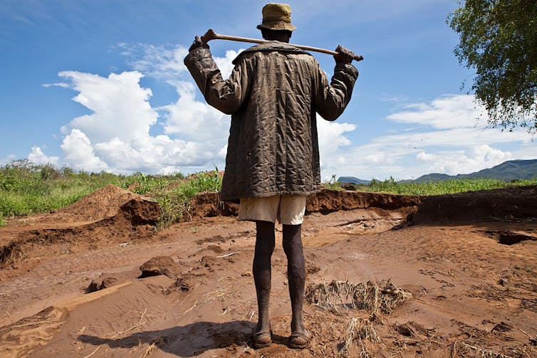 A maize farmer in Kenya surveys his degraded land.