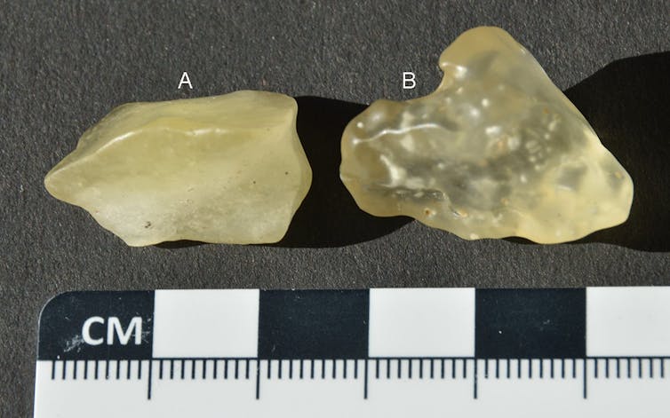 It was first described in a scientific paper in 1933 and is known as Libyan desert glass. Mineral collectors value it for its beauty, its relative rarity – and its mystery. A pendant found in Egyptian pharaoh Tutankhamun’s tomb contains a piece of the glass. Natural glasses are found elsewhere in the world; examples include moldavites from the Ries crater in Europe and tektites from the Ivory Coast. But none are as rich in silica as Libyan desert glass, nor are they found in such large lumps and quantities.