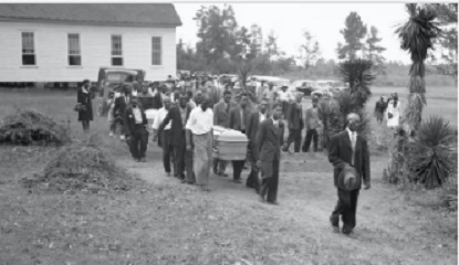 A funeral held in July 1945 for two victims of the Ku Klux Klan, George Dorsey and his sister, Dorothy Dorsey Malcolm, of Walton County, Georgia, held at the Mt. Perry Baptist Church Sunday.