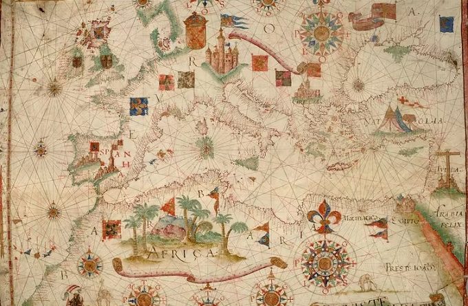 Luis Texieira, Portolan Chart, Lisbon, ca. 1600 via Wikimedia Commons.