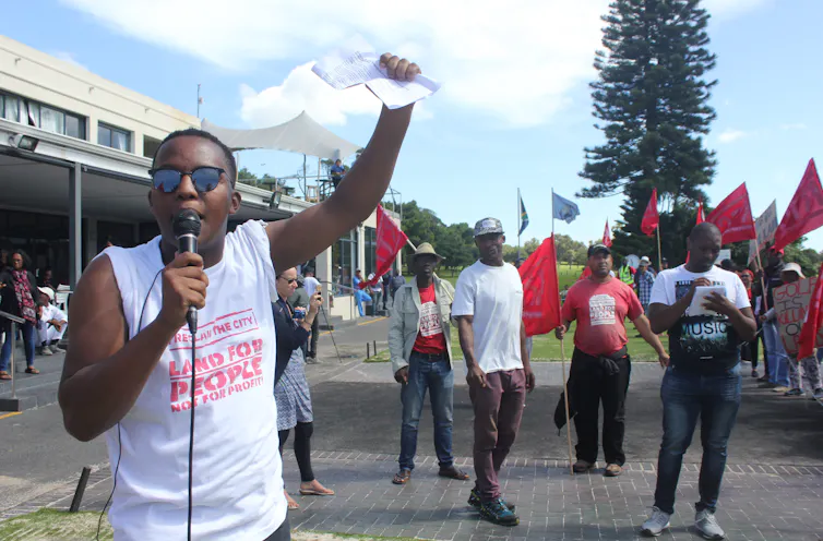 Activist Nkosikhona Swartbooi leads a protest in the documentary Mother City.