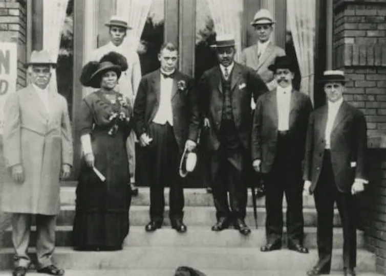 Walker, second from left, and Booker T. Washington (holding his hat) at the opening of a black YMCA in Indianapolis that she supported with her own money and fundraising efforts.