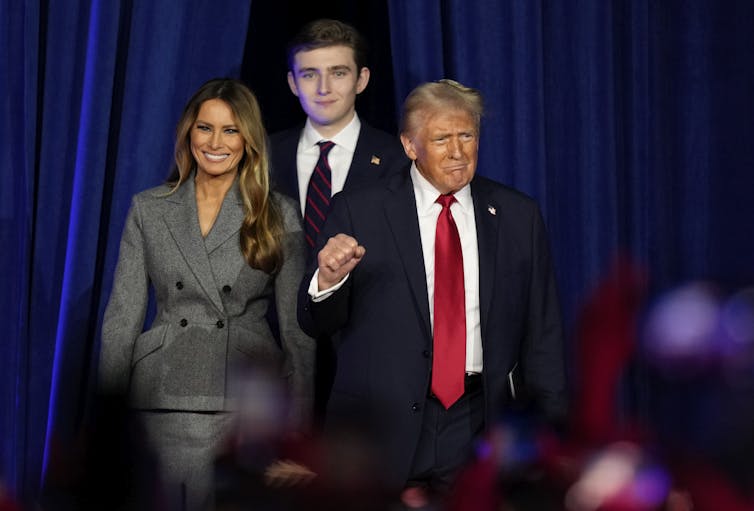 President-elect Donald Trump, joined by Melania Trump and Barron Trump, on Nov. 6, 2024, in West Palm Beach, Fla.
