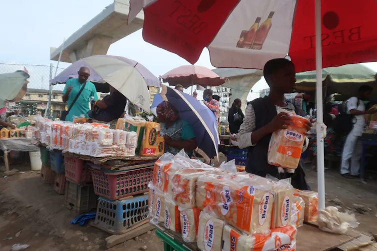 Bread sellers display at roadside in Lagos.