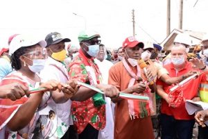 The candidate of the Peoples Democratic Party (PDP) and Edo State Governor, Mr. Godwin Obaseki, on Friday, commissioned the 7.1km Idumebo-Ihumudumu-Royal Market Road and the 2.3km Ujoelen Road, in Ekpoma, Esan West Local Government Area, in furtherance of his administration’s commitment to boost economic activities in the state and improve the living standards of the people.
