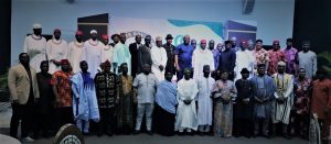 Representative of Edo State and Chief of Staff, Osaigbovo Iyoha (2nd row, middle) with other officials of the state government and delegates from the National Defence College on Course 31 Tour of Edo State, during a dinner at the Government House in Benin City.