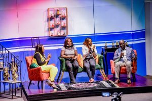 L-R: Film Director, Stanley Ohikhuare; Edo State Governor, Mr. Godwin Obaseki, and Managing Director, EdoJobs, Mrs. Ukinebo Dare, during the EdoJobs Result Show, at the Edo Creative Hub, in Benin City.