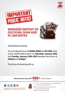 It seemed like a well rehearsed, choreographed and synchronized plan when almost all the banks in Nigeria announced that their doors would be thrown wide open on the weekend, January 28 and 29th to receive old notes into their vaults. This was to ease the traffic towards the complete and total mop up of the old naira denominations of 200, 500 and 1000.
