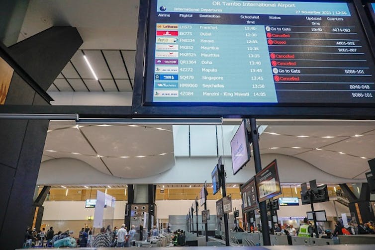 What not to do: ban travel. Scenes at South Africa’s OR Tambo International airport after the first flight bans were announced.