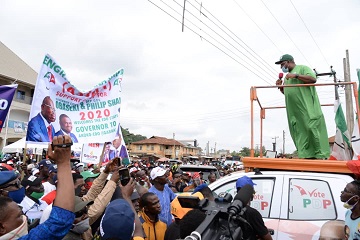 “He believes that the people must be taken seriously, which is why he has put them before anyone’s selfish interest. You can see that the man Oshiomhole condemned four years ago is the same man he is parading everywhere and kneeling to beg for. No man is God. With all of you present, we say enough is enough to godfatherism in our state.