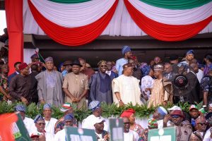 The Edo State Governor, Mr. Godwin Obaseki, on Sunday, joined the Peoples Democratic Party (PDP) Presidential candidate in the 2023 general elections, Alhaji Atiku Abubakar; Delta State Governor and PDP Vice Presidential candidate, Sen. Ifeanyi Okowa and other dignitaries in Osogbo for the swearing-in of Sen. Ademola Jackson Adeleke as the Governor of Osun State.