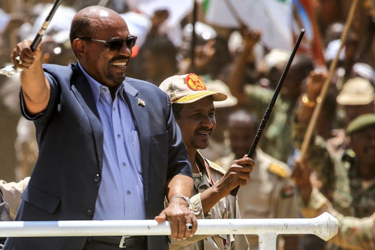 Sudan’s Omar al-Bashir (left) and Mohamed Hamdan Dagalo tour Darfur in 2017.