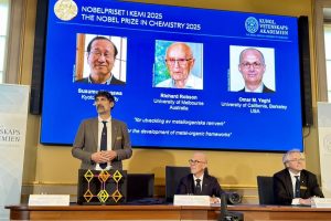 Three scientists have been awarded the 2025 Nobel prize in chemistry for discovering a new form of molecular architecture: crystals that contain large cavities.