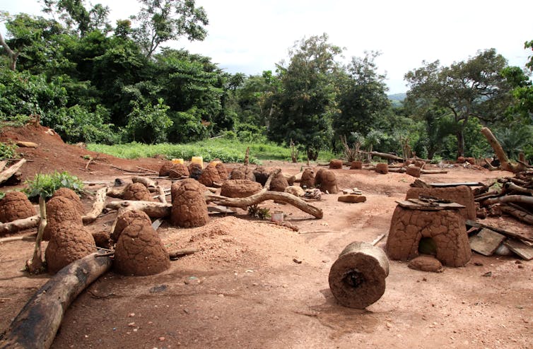 Roadside workshop with fireplace near Atakpamé, Togo.
