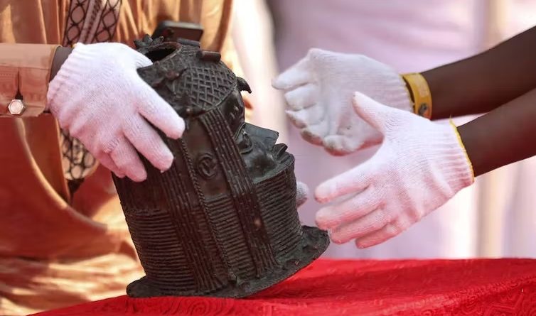 An artefact is returned to the king of Benin in Nigeria.