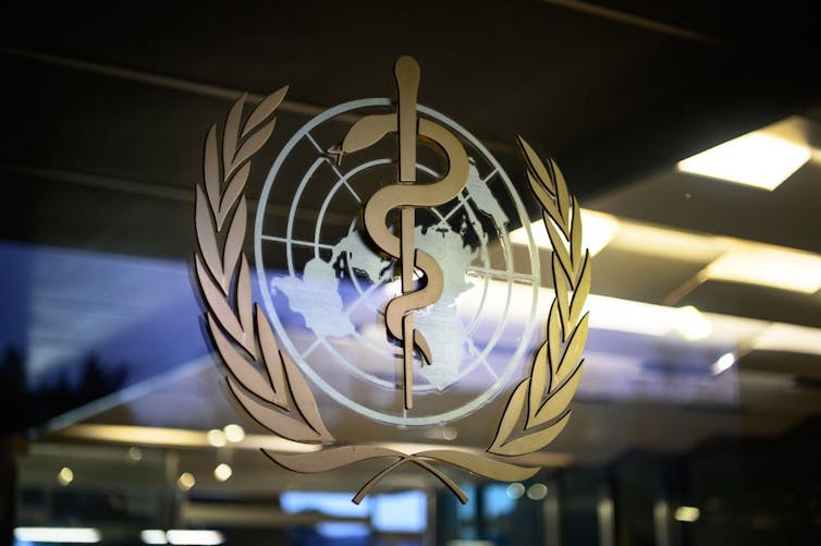 The World Health Organization (WHO) sign at its headquarters.