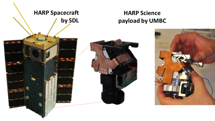 I’m leading a team here at the University of Maryland, Baltimore County that’s collaborating on a science-focused CubeSat spacecraft. Our Hyper Angular Rainbow Polarimeter (HARP) payload is designed to observe interactions between clouds and aerosols – small particles such as pollution, dust, sea salt or pollen, suspended in Earth’s atmosphere. HARP is poised to be the first U.S. imaging polarimeter in space. It’s an example of the kind of advanced scientific instrument it wouldn’t have been possible to cram onto a tiny CubeSat in their early days.