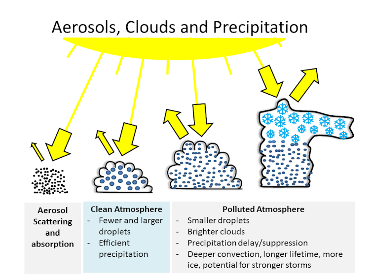 Pollution particles lead to precipitation changes.