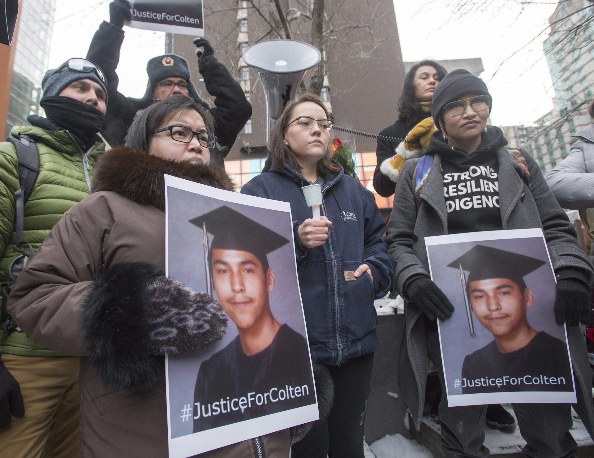 Social media has become a place of vitriolic myths about Indigenous peoples in the wake of the Gerald Stanley trial for the killing of Colten Boushie. Here, a vigil in support of Colten Boushie’s family on Feb. 13, 2018.